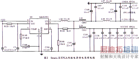 图2所示是为该系统中Stratix II电源内核供电的原理图。