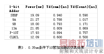 TALBE 3. Simulation results of 10-T adder designs in 0.35um CMOS technology .(td=time delay)