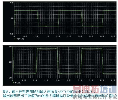 你可通过调节R7来最大限度减少直流输出失调电压和转换速率。根据经验,R7的阻值应取R9阻值的两倍。R9和R8的阻值之比设定放大器的增益。图2示出了R7和R9取最佳阻值时的输入和输出波形。要注意的是,Q1和Q2的VCEO额定值会将VCC和-VCC限制在300V以内。