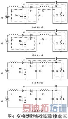 假设该变换器已工作在稳定状态。对应与图4,该变换器的一个开关周期内的各个工作模式分析如下: