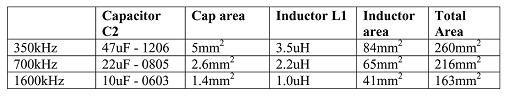 表格3显示了感应器和电容器的数值,以及PCB所需板面面积