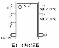 源极(S)引脚 控制电路的公用点,连接到内部MOSFET的源极,4个源极在内部是相连通的,它们被划分成两组,其中2个S端须接控制电路的公共端,另2个S(HVRTN)端则接高压返回端,其典型应用电路如图2所示。
