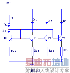 (7-2-3) 与7-2-1式相比可得,在相同IC1的情况下,可以用较大的R,以减少IR的值,降低R的功耗。同时Re0和Re1是两个三极管的发射极电阻,引入电流负反馈,使两三极管的输出电流更加稳定。 [p]