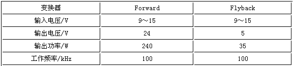 一个带有本文所提出的限流保护电路的正激变换器,和一个带有限流保护电路和补偿电路的反激变换器验证了上述的理论结果,其电路参数如表1所列。
