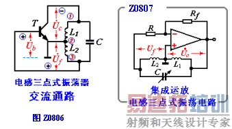 图Z0805是电感三点式振荡电路,又称哈特莱振荡电路。图中L1、L2、C组成谐振回路,L2兼作反馈网络,通过耦合电容Cb将L2上反馈电压送到三极管的基极。