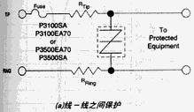 DSSA在保护电路中的连接方式分两类,一类是信号线之间的保护,另一类是信号线到地之间的保护,分别如图1(a)和图1(b)所示。关于这两类保护的具体要求,UL1459、FCC(68部分)和CSA-C222(NO.225)等安全标准都有详细的规定。