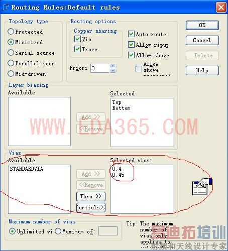 原帖由 zxf 于 2008-9-2 16:53 发表 看看有沒有設置過孔啊 见笑了,请问如何设置过孔? 建议你先看下教材,这些都是基础问题。设置过孔在setup-pad stacks 然后选择VIA 在里面进行相应的设置就OK