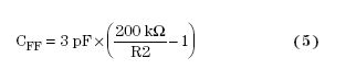 如果设计人员必须使用前馈电容来提高稳定性,则一些转换器的内部补偿要求特定的CFF值。这种情况下,不应使用方程式4。设计人员应使用产品说明书的建议设计方程式。例如,TI TPS61070便有高侧反馈电阻器(R1)的内部补偿。它的产品说明书建议使用下列设计方程式,用于添加一个与R1并联的电容: