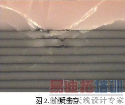 如图3所示,断裂通常沿着一层或两层介质层贯穿整个电容的中部。大多数的解决方案是将多个电容器通过添加引脚进行叠加,从而在给定尺寸下提高容值,但这需要消耗大量人力,花费较多成本,并会产生可靠性问题。另外的解决方案使用特殊电介质配方,但同时以牺牲介电常数作为代价,并影响最终可获得的容值大小。