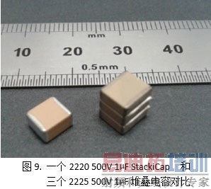 2220,1kV,470nF的StackiCapTM替代;3640,1kV,180nF的电容如今可被单颗1812,1kV,180nF的StackiCapTM替代,体积分别缩小到原来的1/10和1/7。