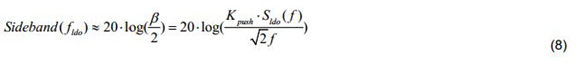 对于采用LDO供电的射频频综来说,通常用LDO的指定频率偏移的频谱噪声密度Sldo(f)(Noise Spectrum Density)来表征电源噪声,由于它是一个RMS电压值,所以式(4)可以表示为