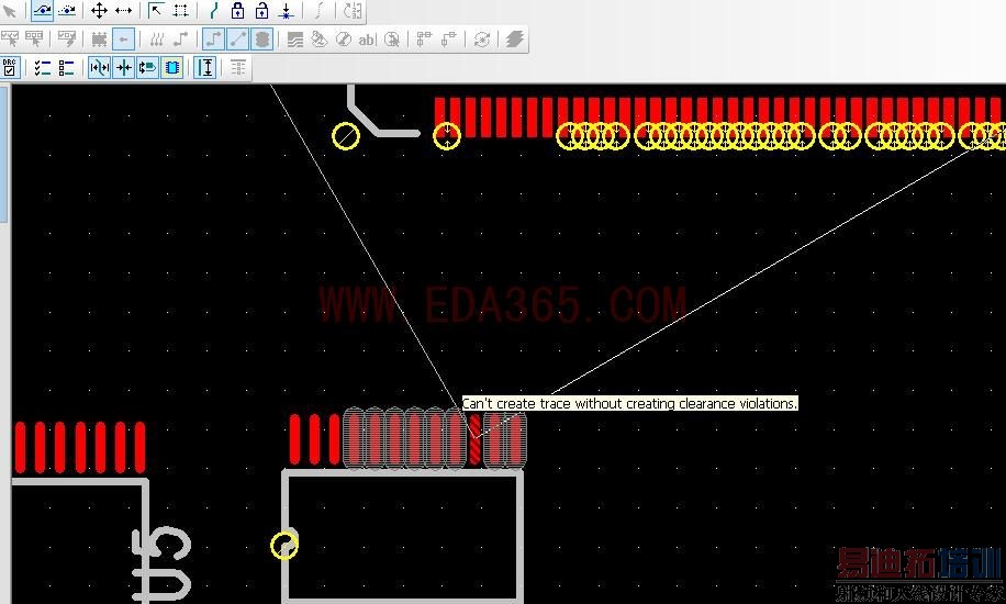 黄圈应该是安全间距的问题吧,报错了。随便说的,怎么解决不太清楚,我也是一菜鸟,呵呵!