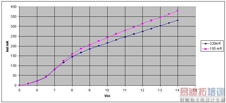 图8:图7电路中LED电流与输入电压的关系。