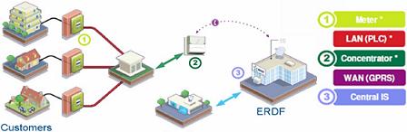 图1:法国EDF旗下公司法国配电公司(ERDF)的Linky项目简略示意图。
