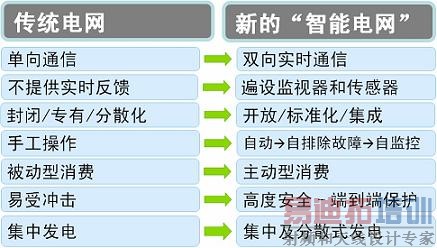 表1:传统电网与新的智能电网之间的简单对比。