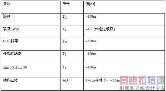 在锁存式双沿PWM调制器中,最长的动作延时发生在下边功率MOSFET接通时负载瞬变发生的时刻。约T/2的动作延时是可能的,其中T为开关周期。没有锁存器的双沿调制器可以极大地改善消除Ta后的动作延时。
