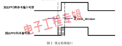 数字锁定检测的基本原理就是比较相位误差和预先设定的锁定检测窗口TLock_Window,一旦相位误差在连续N个周期里均落在预先设定的检测窗口以内,数字检测电路就指示该锁相环处于锁定状态;而在锁定状态下,一旦相位误差超出所设定的检测窗口,数字检测电路就指示该锁相环处于失锁状态。