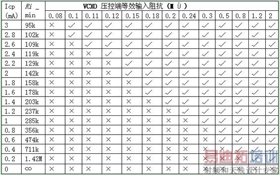 假设在应用中CDCE72010 中鉴相频率为1MHz,电荷泵电流为1,预设的锁定检测窗口为5.8ns,本地VCXO的压控电压为1.65V,则可以得到VCXO的输入阻抗要求: