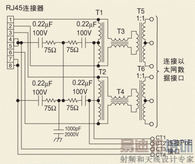 图2:从以太网电缆获得PoE功率和10/100数据 |