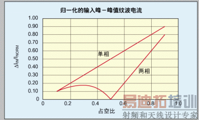 Inom=VIN/L×fs 进行了归一化。另外还要注意,均方根纹波电流被定义成近似等于峰-峰值纹波电流的29%。