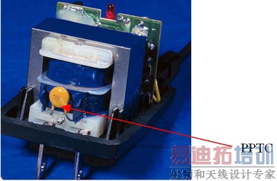 此接触的方式使该器件能够很容易地与设备形成物理接触,从而提高了保护的效果。在这类设备中,变压器是一个很好的例子,PolySwitch器件可以捆绑在外部线圈上或外壳上(如图3所示),从而建立起热量联系,还可以在设计时结合到电路中,使其具备在变压器过热时向控制器发送警告,系统马上停止运行。