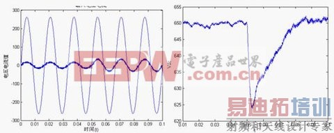 图6 输入a相电压和电流稳态波形 图7 输出直流电压稳态波形