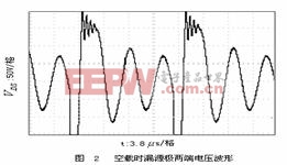 根据以上设计原则,使用TOP245Y芯片设计出了+5V/2A、+15V/0.5A、-15V/0.5A三路输出开关电源,图2~图4给出了实测波形。由图可见,满载时,电源工作在最大占空比35%左右。输出纹波由变压器漏感导致的尖峰电压及输出整流二极管关断时所产生,这些提高变压器制造工艺以及优化PCB布线等方法加以改善。