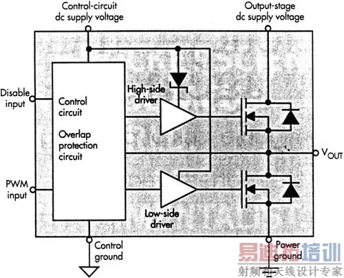 配置一个减小尺寸、可伸缩多相变换器的一种方法是采用DrMOS(Driver-MOSFET)规范(Intel公司2004年11月提出)。DrMOS模块包括驱动器和功率MOSFET(图2),设计用于多相变换器。