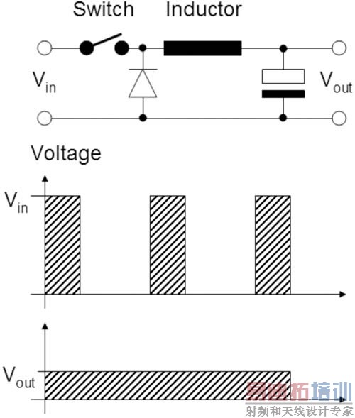 如该图所示,矩形波形下方的面积对应着输出波形的相同面积,但在后者中所有矩形波都连接在一起而产生一个平滑的输出电压。在这种拓扑的前一代结构即所谓的线性稳压器中,开关的功能是由可变电阻所实现的,而且没有电感。电阻值必需随线路和负载的变化而变化,一般有一个有源控制电路根据输出电压对之进行驱动。损耗与I R成正比,随电流与输入/输出电压的差值增加而增加,并且增加速度非常快。