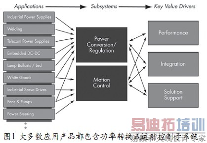 我们日常生活中的大多数应用产品都包含了功率转换或运动控制子系统,如图1所示。把这种应用前景一分为二有助于解决问题。