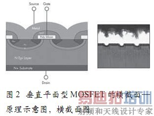 图2 垂直平面型MOSFET的横截面—原理示意图,横截面图