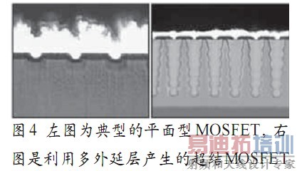 图4 左图为典型的平面型MOSFET,右图是利用多外延层产生的超结MOSFET