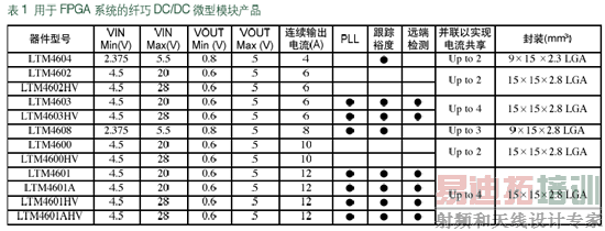 凌力尔特公司在DC/DC稳压器架构和封装领域的创新已经允许新一代负载点解决方案满足FPGA系统更严格的要求。微型模块DC/DC稳压器系列(表1)由6个具有不同功率级和功能的产品组成。这些器件的可靠性在多芯片封装领域也竖立了新的标准,并得到凌力尔特公司严格的质检和测试支持。这些微型模块DC/DC解决方案为新一代FPGA和基于FPGA的系统更精细地提高性能创造了机会。