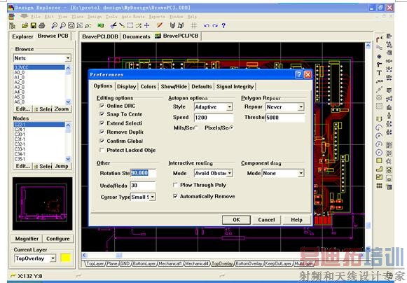 Protel99se:Tools--preferences--options--other--Rotation step值改45。如图:
