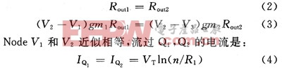 在图2中,输入端连接V1,V2和V2,V3的四输入运放,其输出端连接在一起,因此他们具有相同增益A1,各参数完全相同,即输出阻抗也相同: