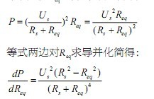 虽然太阳阵和DC/DC电路是非线性的,然而在极短时间里,可以作为线性电路处理。根据戴维宁定理可以将方框外的电路等效为一个阻抗,假设此阻抗为Req,则任一时刻此等效阻抗Req上得到的功率为: