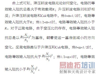 目前,常用的DC/DC电路有降压斩波电路、升压斩波电路、升降压斩波电路、Cuk电路以及正、反激电路。假设上述几种电路都为理想电路,则它们的等效输入阻抗分别如下(a为开关器件的占空比,0