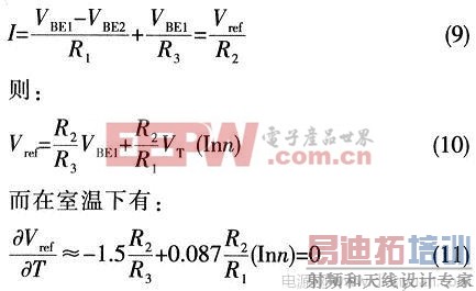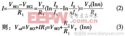 其中,VBE具有负温度系数,VT具有正温度系数,这样,通过调节n和R2/R1,就可以使Vref得到一个零温度系数的值。一般在室温下,有: