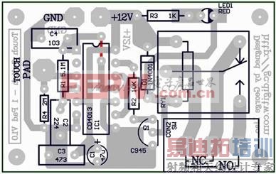 2. 制作时也发现有些IC的动作过于灵敏,时有误动作发生,所以我在电路上加上C4,在零件焊接时先不要焊上C4,测试时,如发现在没有触摸到触摸片时会有动作变换(有时会发生在开关日光灯时,你自己可以试试),才把C4加上去,甚至在可以在触摸时电路没有动作时降低C4的值,或还是有误动作时升高C4的值,寻找最稳定的值。