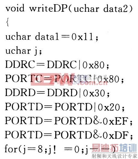 MCP41010的指令非常简单,由两段组成(如图3所示),每段均有一个字节:第一段为命令字节,第二段为数据。命令字节中第2,3位和6,7位为无效位,不用对其操作;C1,CO为指令选择位;P1,PO为电位器选择位,由于MC2P41010只集成了一个电位器,所以P1,P0必须设为01。在MCP41010中,C1,C0为Ol时为写数据指令;C1,CO为00或01时为空操作;Cl,CO为10对应关闭模式用于MCP42XXX系列数字电位器。在MCP41010中写命令字节通常为0xll,数据字段为8 b/s数据,可以置滑动端到256个端点中任何一个,因此精度非常高。