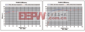 图5 FAN9612 EVB相位管理的效率性能(注:包含EMI滤波器)