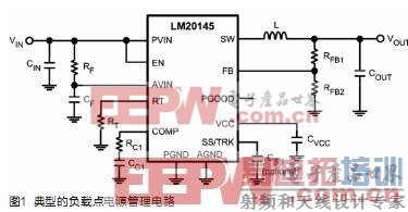 基于以上的要求,单靠一个电源管理电路实不足担当FPGA或类似负载的负载点电源。美国国家半导体的LM20000负载点稳压器系列具备各种规格,能够在设计过程中互相替换。假如FPGA的最终代码在开发期间被修改或被要求需要更大的电流时,可以改用LM20000系列中具备更大电流额定的成员,而此期间无需再花时间重新设计,因为系列中所有成员的特性均相互近似。假如一个系统采用多个不同的开关频率,便很容易产生诸如差拍现象等频率问题,而通过将多个负载点稳压器同步化便可解决这一问题。这些稳压器将会起动进入一个具备单调斜波特性的预偏置负载,以防止出现某些FPGA或ASIC的锁存或类似行为。配合软启动及追踪功能,便能够根据个别FPGA或ASIC的类型来紧密控制起动。图1所示为一个典型的大电流负载点电源的例子。由于电源管理电路内同时包含了高边及低边功率晶体管,因此只需选用少量的外置元件及进行简单的优化程序便可。