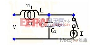 L 型LC 滤波电路的等效模型见图一。整个等效模型的元件有电感L 和退耦电容C1。电感L 主要作用是扼制电流的跳变电流源