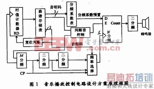 音乐播放控制电路设计方案原理框图如图1所示。
