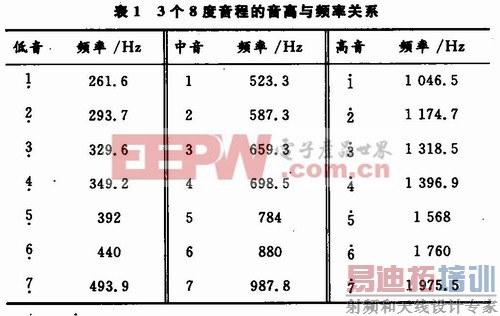 分析表1可见,表中3个不同音程相同音名(同一行)的信号频率都相差一倍。