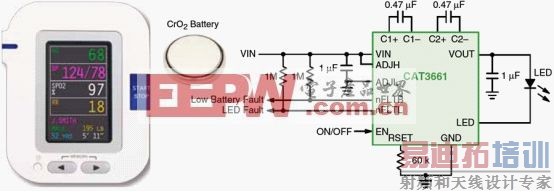 图4:针对扣式电池优化的CAT3661 LED驱动器应用电路图。