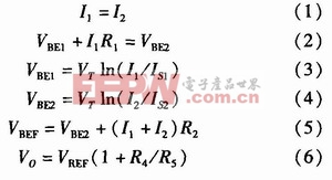 其中,N=IS1/IS2为QN1和QN2的发射极面积之比。VBE2的温度系数为-1.5 mV/℃,VT的温度系数为+0.086 mV/℃,所以选择适当的N值和R2/R1的比值,就可以得到零温度系数的输出电压。另外,调节R4和R5的比值,可以得到期望的基准电压,且不会改变已调整好的零温度系数特性。