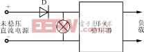 直流开关稳压器的输入一般都是未稳压直流电源。由于操作失误或者意外情况会将其极性接错,将损坏开关稳压电源。极性保护的目的,就是使开关稳压器仅当以正确的极性接上未稳压直流电源时才能工作。利用单向导通的器件可以实现电源的极性保护。最简单的极性保护电路如图1所示。由于二极管D要流过开关稳压器的输入总电流,因此这种电路应用在小功率的开关稳压器上比较合适。在较大功率的场合,则把极性保护电路作为程序保护中的一个环节,可以省去极性保护所需的大功率二极管,功耗也将减小。为了操作方便,便于识别极性正确与否,在图1中的二极管之后,接指示灯。