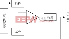 正常时,比较器没有输出,一旦电压跌落在允许值之下比较器就翻转,驱动告警电路;同时反馈到开关稳压器的控制电路,使开关三极管截止或切断输入电源。