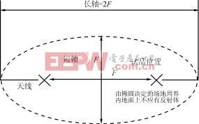 满足标准的辐射测试场地应该是一个由长轴等于两倍焦距(F)、短轴等于倍焦距(F)的椭圆所包围的场地,见图1所示。试验时,试品和测量天线将分别处在两个焦点上。
